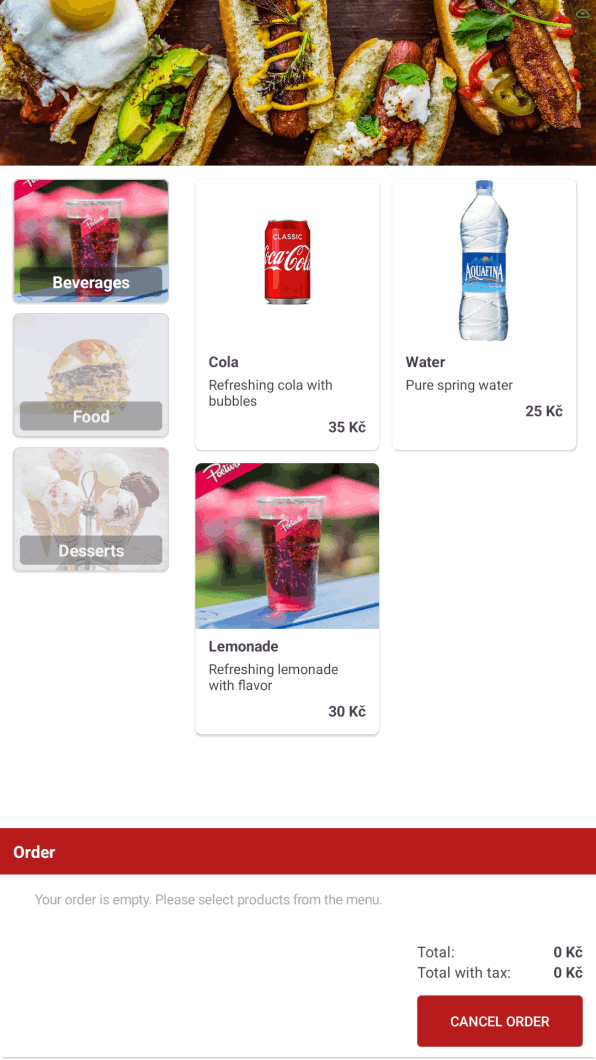Přehledné kategorie a produkty s jednoduchým ovládáním.