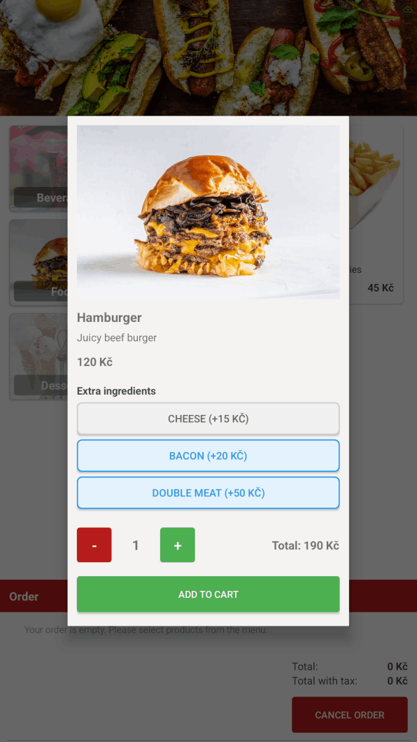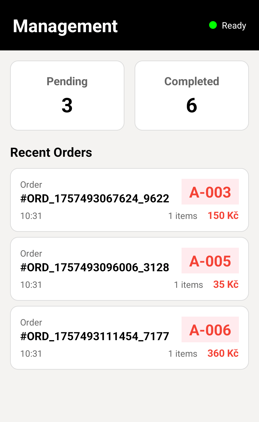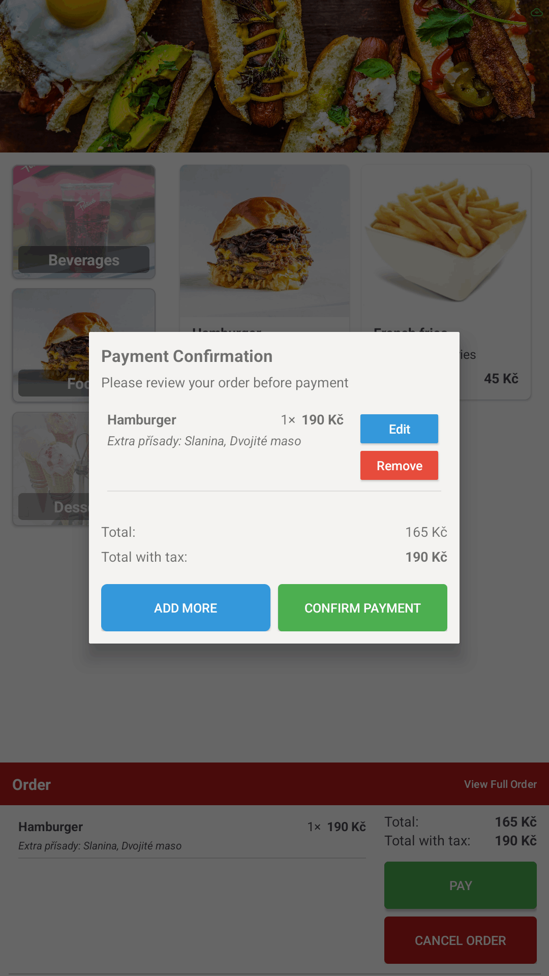 Jednoduchá aplikace určená pro bistra, stánky rychlého občerstvení, restaurace nebo prodejny různého zboží. Aplikace umožňuje provoz samostatně v rámci provozovny i napojení přes API na externí pokladní/skladový systém.